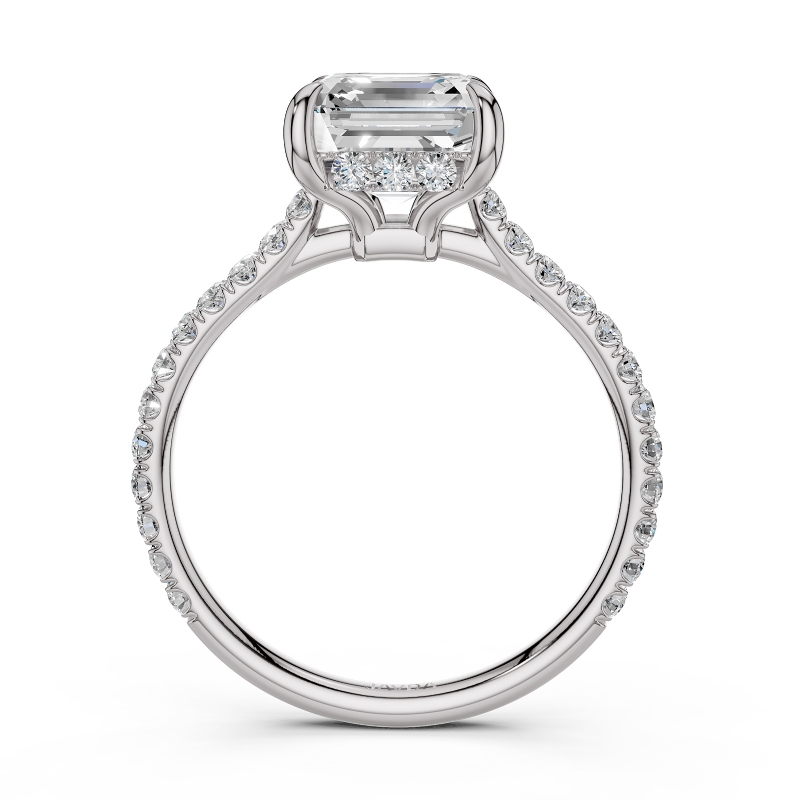 Hidden Halo U Pave Round Semi Mount Diamond Engagement Ring 14k White Gold 0.47Ct.