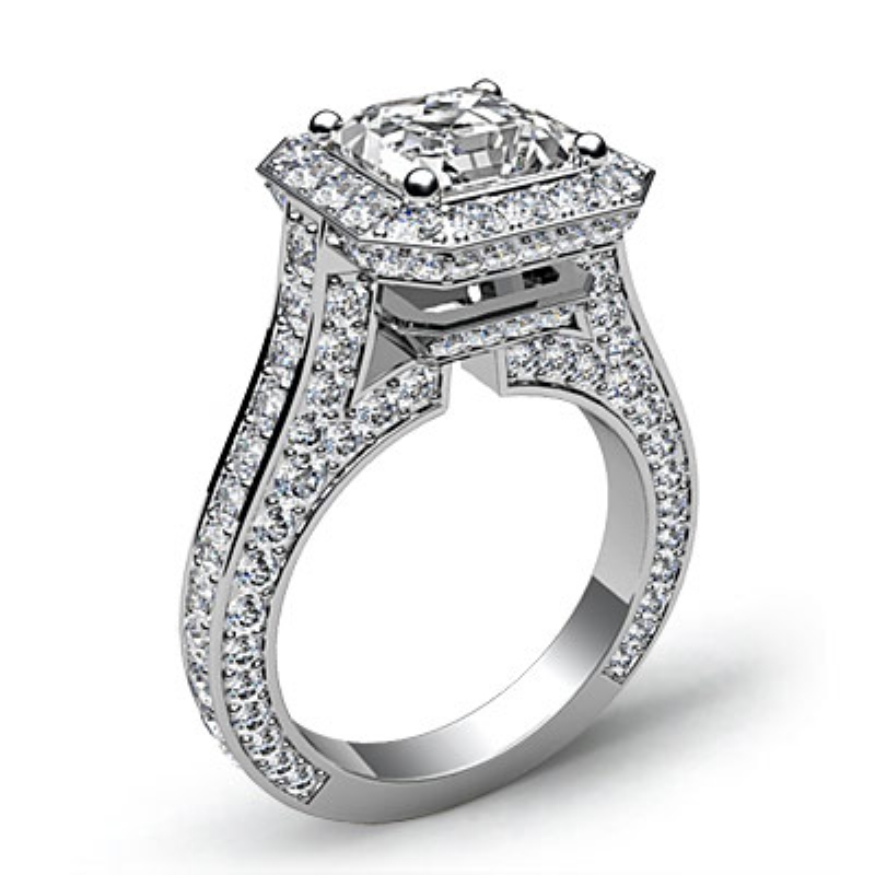 Halo Micro Pave Bridge Accent style Engagement Ring, center is Asscher shape Diamond Report by IGI, D Color & VS1 clarity, Made in 14k White Gold (3.18 ct. tw.)