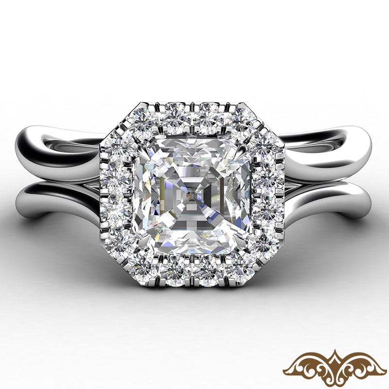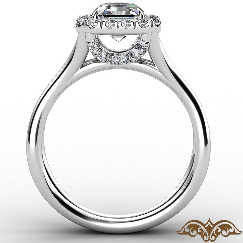 French U Cut Pave Crown halo style Engagement Ring, center is Asscher shape Diamond Report by IGI, D Color & VS1 clarity, Made in 14k White Gold (1.48 ct. tw.)