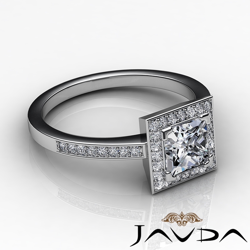 1Ct Diamond Engagement Ring Halo Setting 14k White Gold Princess Shape SemiMount.