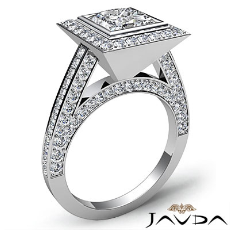 style Engagement Ring, center is Princess shape Diamond Report by GIA, J Color & VS1 clarity, Made in 14k White Gold (2.61 ct. tw.)