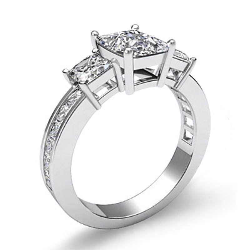 3Stone Diamond Engagement Ring 14k White Gold Princess Round Setting 1.1Ct.