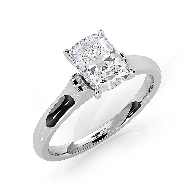 Cushion shape is diamond certified by GIA, 100% natural D color & VS1 clarity {0.50 ctw.}.
