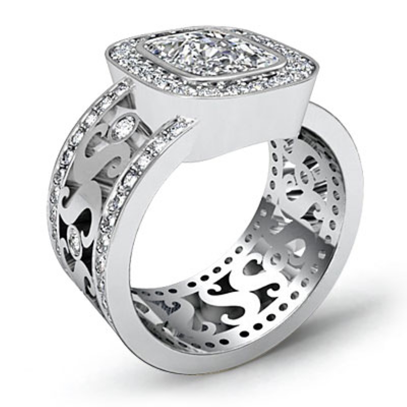 style Engagement Ring, center is Cushion shape Diamond Report by GIA, D Color & VS1 clarity, Made in 14k White Gold (1.8 ct. tw.)
