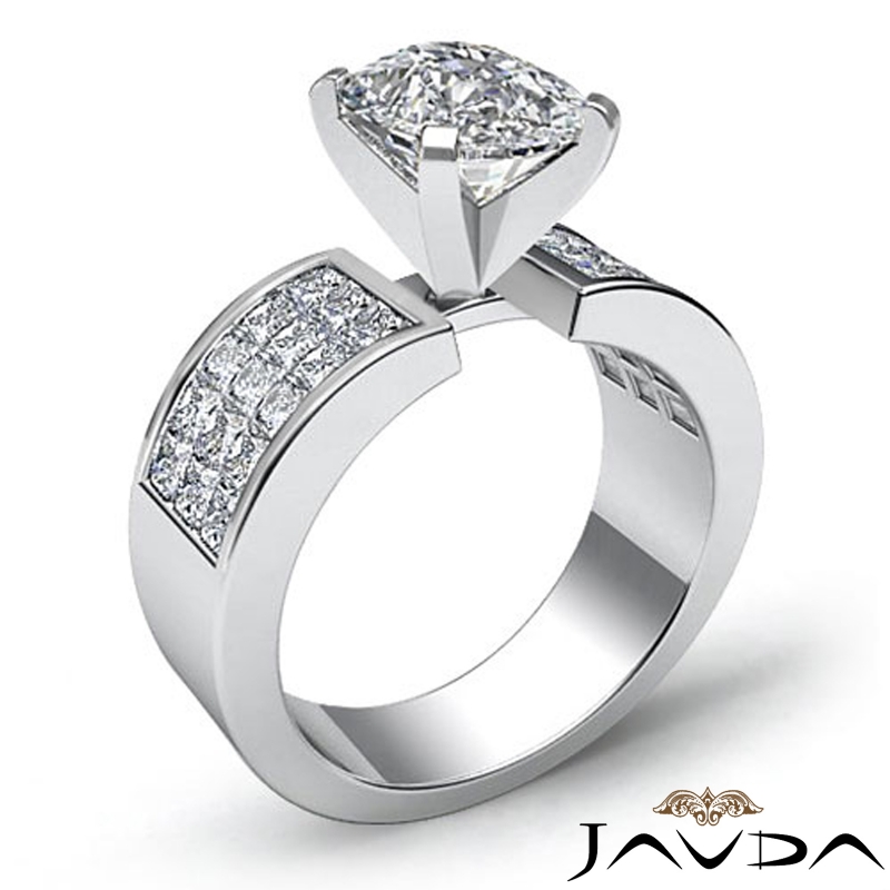Classic Side Stone 4 Prong style Engagement Ring, center is Cushion shape Diamond Report by GIA, E Color & VVS1 clarity, Made in 14k White Gold (1.79 ct. tw.)
