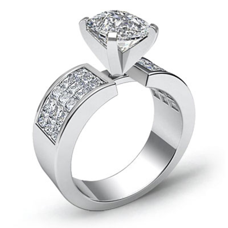 1.29Ct Princess Diamond Invisible Setting Engagement Women's Ring 14k White Gold.