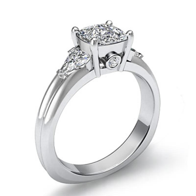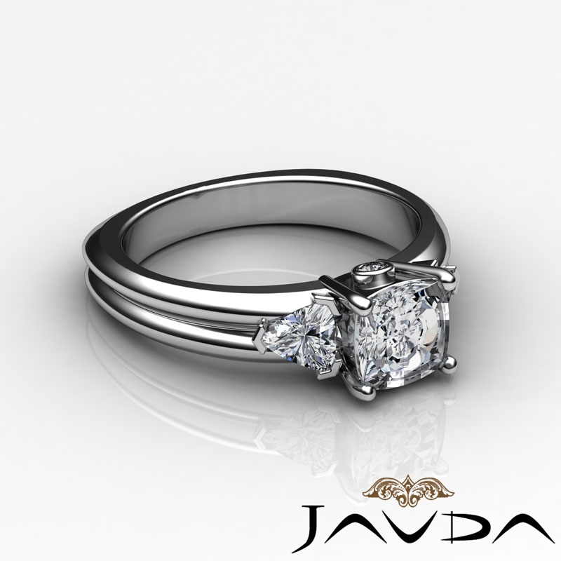 Diamond Engagement Three 3 Stone Trillion Cushion Setting Ring 14k White Gold 0.58Ct - javda.com