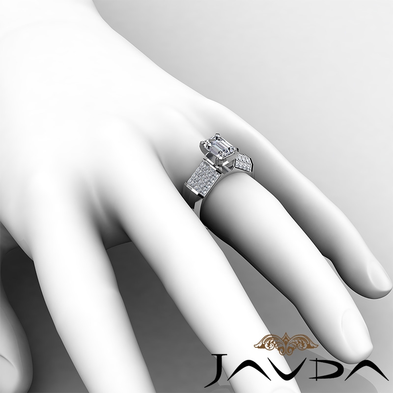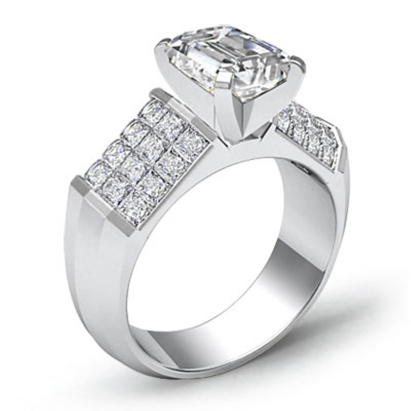 Sidestone Invisible Set style Engagement Ring, center is Emerald shape Diamond Report by GIA, H Color & VVS1 clarity, Made in 14k White Gold (1.7 ct. tw.)