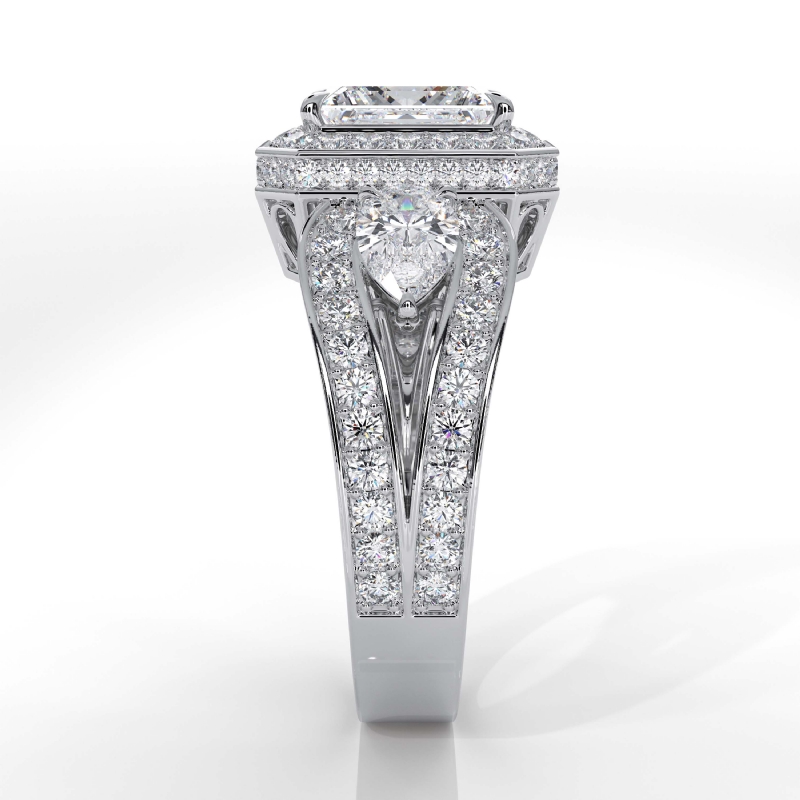 style Engagement Ring, center is Emerald shape Diamond Report by GIA, J Color & VS1 clarity, Made in 14k White Gold (2.85 ct. tw.)