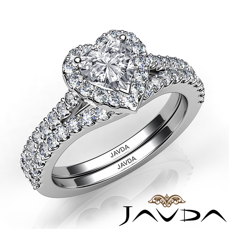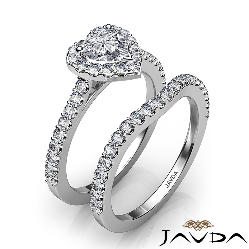 Diamond Heart Cut Semi Mount Engagement Ring Bridal Set 14k White Gold 1Ct.