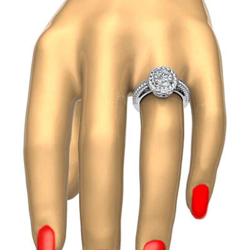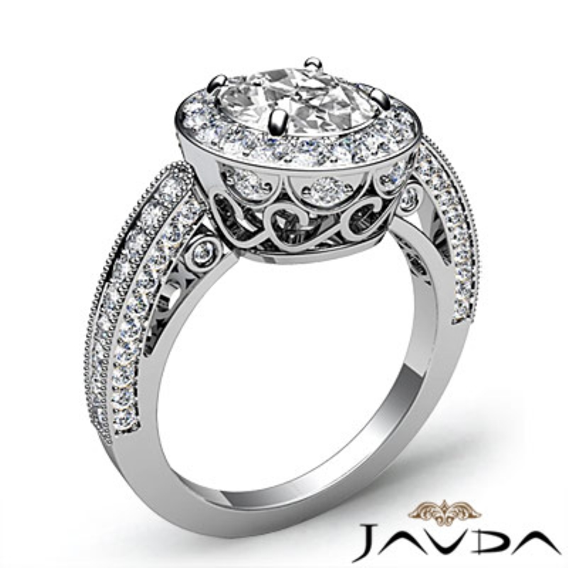Milgrain Edge Halo Filigree style Engagement Ring, center is Oval shape Diamond Report by GIA, F Color & SI2 clarity, Made in 14k White Gold (1.9 ct. tw.)