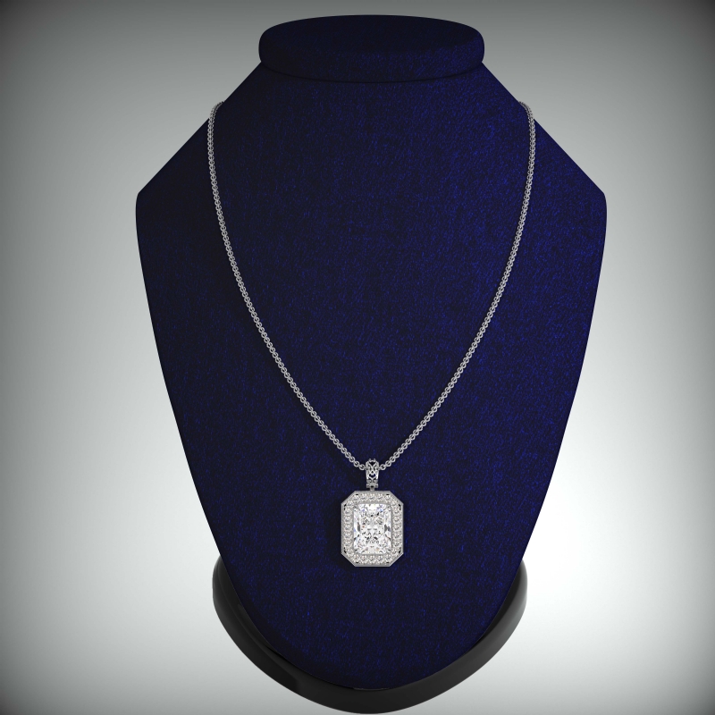 style Engagement Pendant, center is Radiant shape Diamond Report by GIA, I Color & VS2 clarity, Made in 14k White Gold (1.11 ct. tw.)