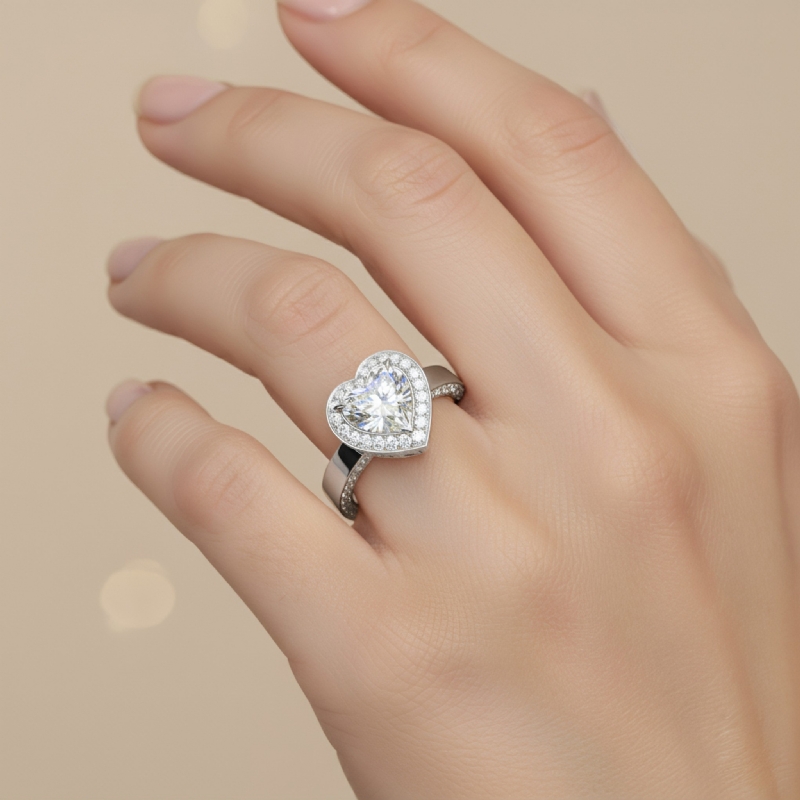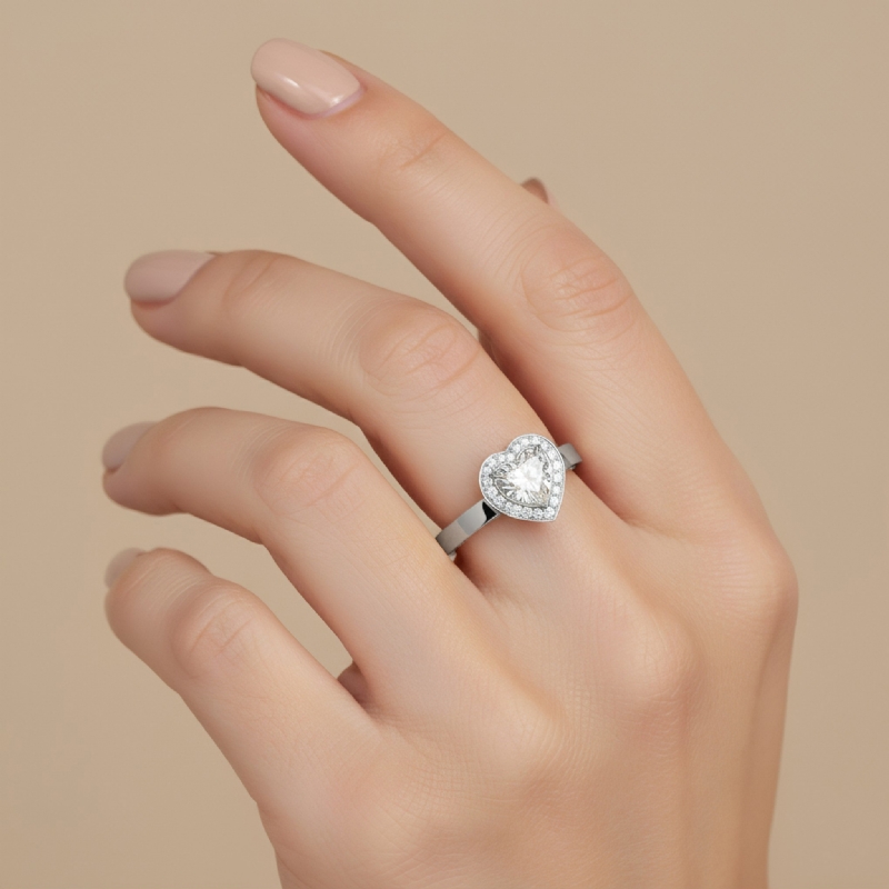 Heart shape is diamond certified by GIA, 100% natural J color & SI2 clarity {0.84 ctw.}.