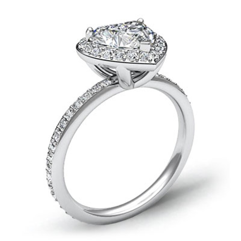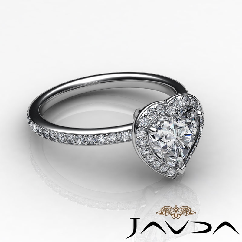 1Ct Diamond Engagement Heart Ring 14k White Gold Halo Semi Mount.