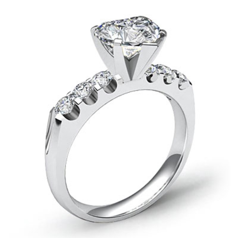 Classic 6 Stone Prong Shank style Engagement Ring, center is Heart shape Diamond Report by GIA, J Color & SI2 clarity, Made in 14k White Gold (1.15 ct. tw.)