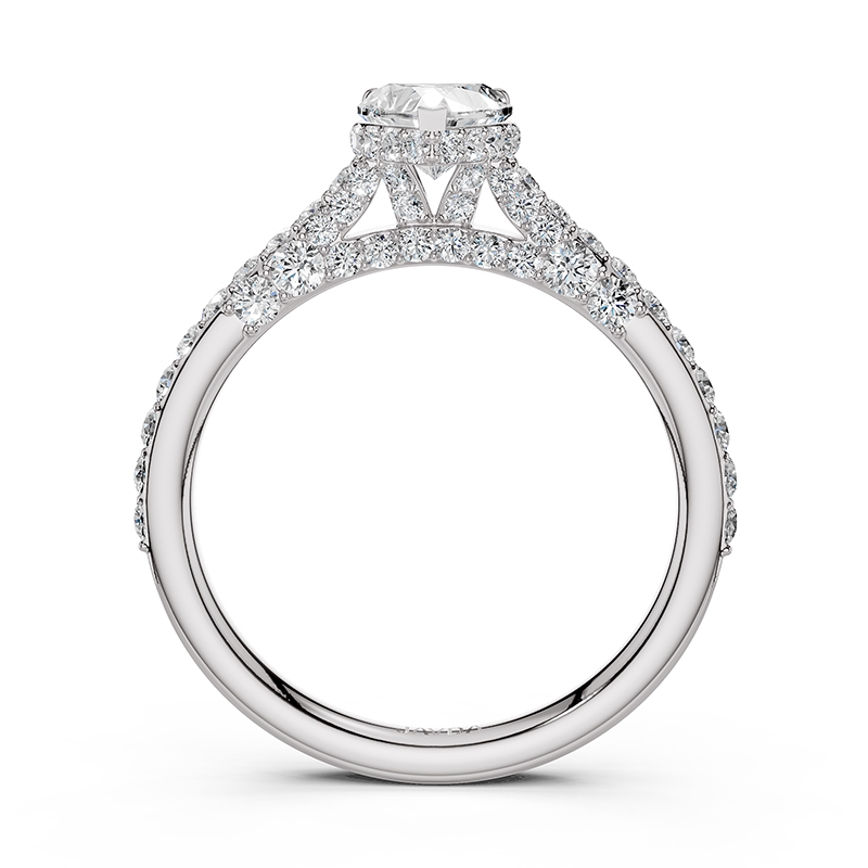 Diamond Engagement Pave Setting 14k White Gold Heart Semi Mount Ring 0.55Ct.