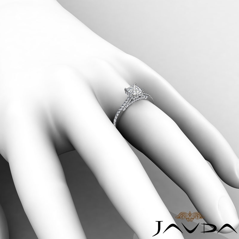 Diamond Engagement Pave Setting 14k White Gold Princess Semi Mount Ring 0.65Ct.