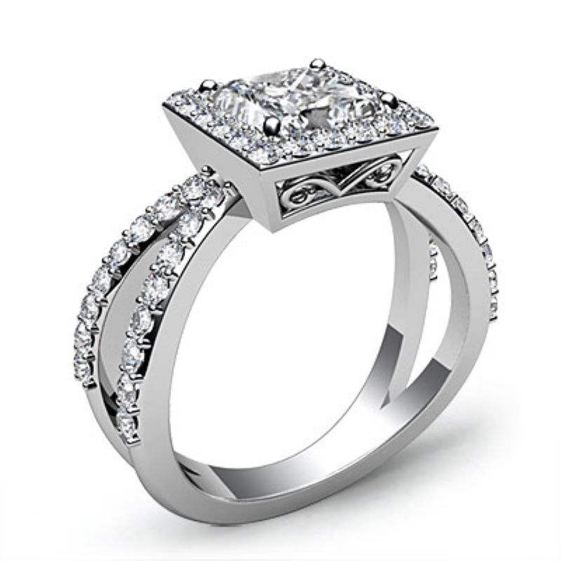 Diamond Engagement SemiMount Ring Split Shank 14k White Gold Halo Setting 0.75Ct.
