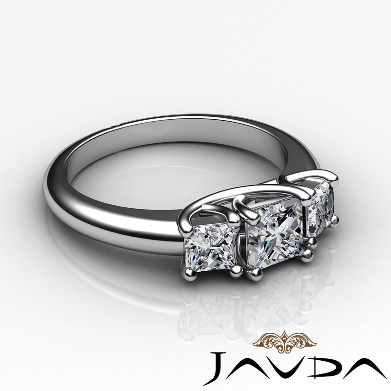 3 Stone Princess Diamond Engagement Ring Semi Mount 14k White Gold 0.8Ct - javda.com