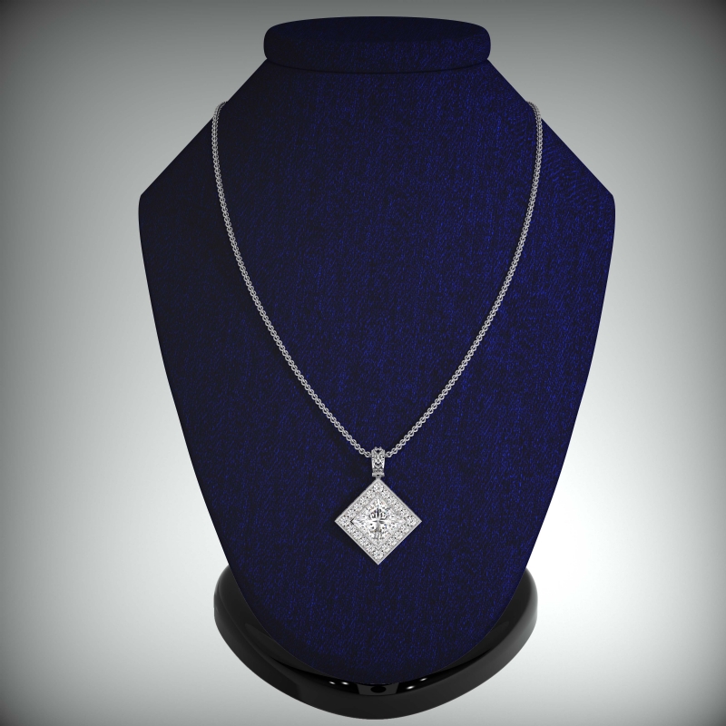 style Engagement Pendant, center is Princess shape Diamond Report by GIA, E Color & VS2 clarity, Made in 14k White Gold (1.2 ct. tw.)