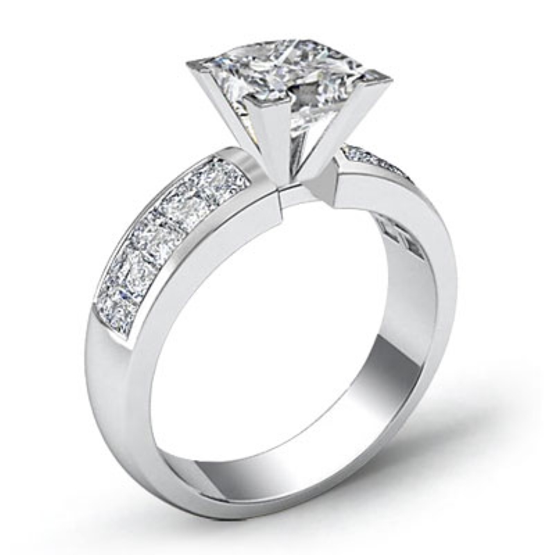 0.86Ct Princess Diamond Women Engagement Ring Invisible 14k White Gold Semi Mount.
