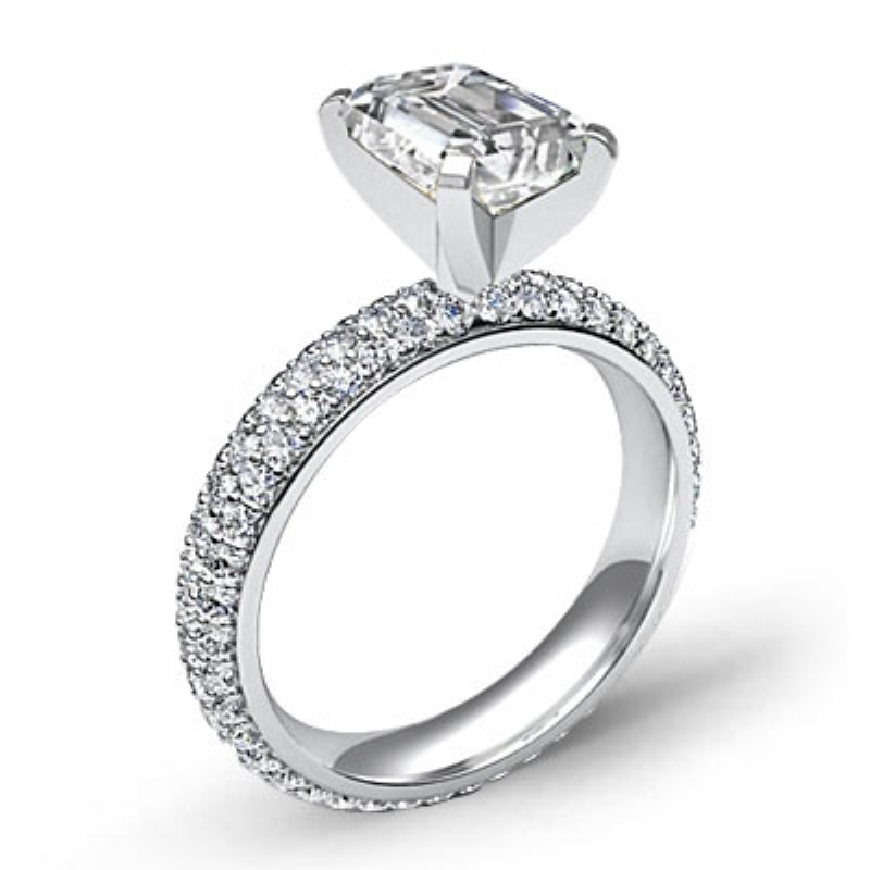 3 Row Micro Pave Set Shank style Engagement Ring, center is Emerald shape Diamond Report by GIA, D Color & VVS1 clarity, Made in 14k White Gold (1.88 ct. tw.)