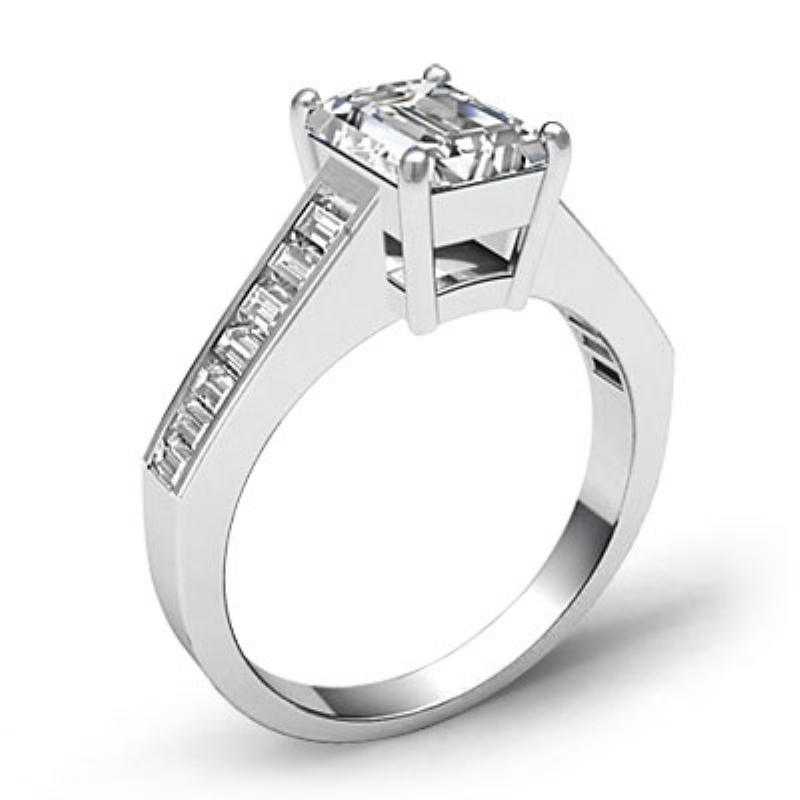0.85Ct Baguette Channel Diamond Engagement Ring Setting 14k White Gold.