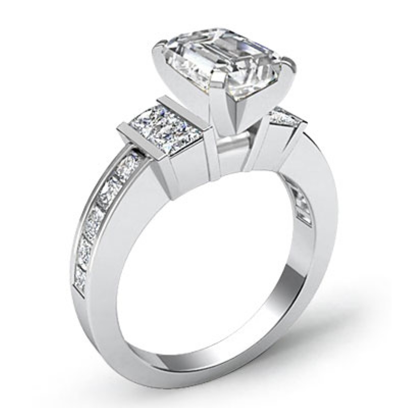 Channel Set Shank Prong style Engagement Ring, center is Emerald shape Diamond Report by GIA, D Color & VVS1 clarity, Made in 14k White Gold (1.5 ct. tw.)