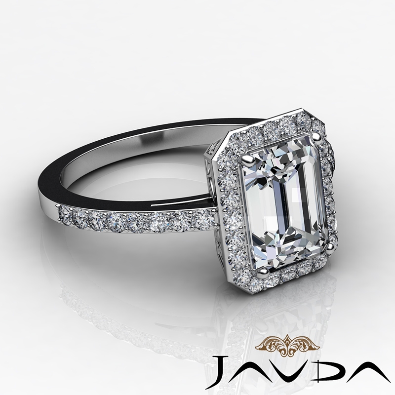style Engagement Ring, center is Emerald shape Diamond Report by GIA, F Color & SI1 clarity, Made in 14k White Gold (0.96 ct. tw.)