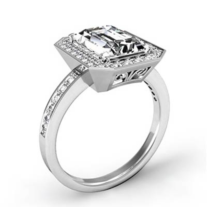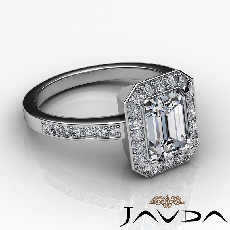 0.5Ct Diamond Engagement Ring Emerald Semi Mount 14k White Gold Halo Setting.