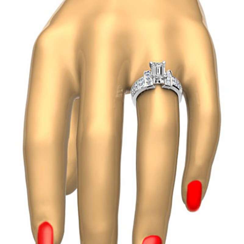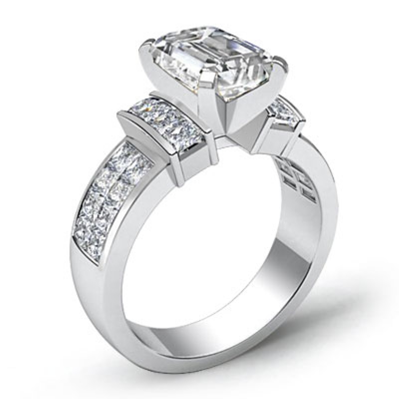 Classic Side-Stone Invisible style Engagement Ring, center is Emerald shape Diamond Report by GIA, D Color & IF clarity, Made in 14k White Gold (1.53 ct. tw.)