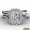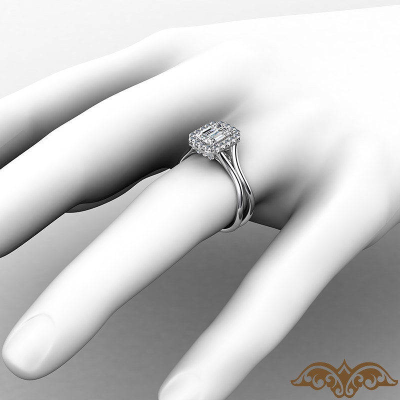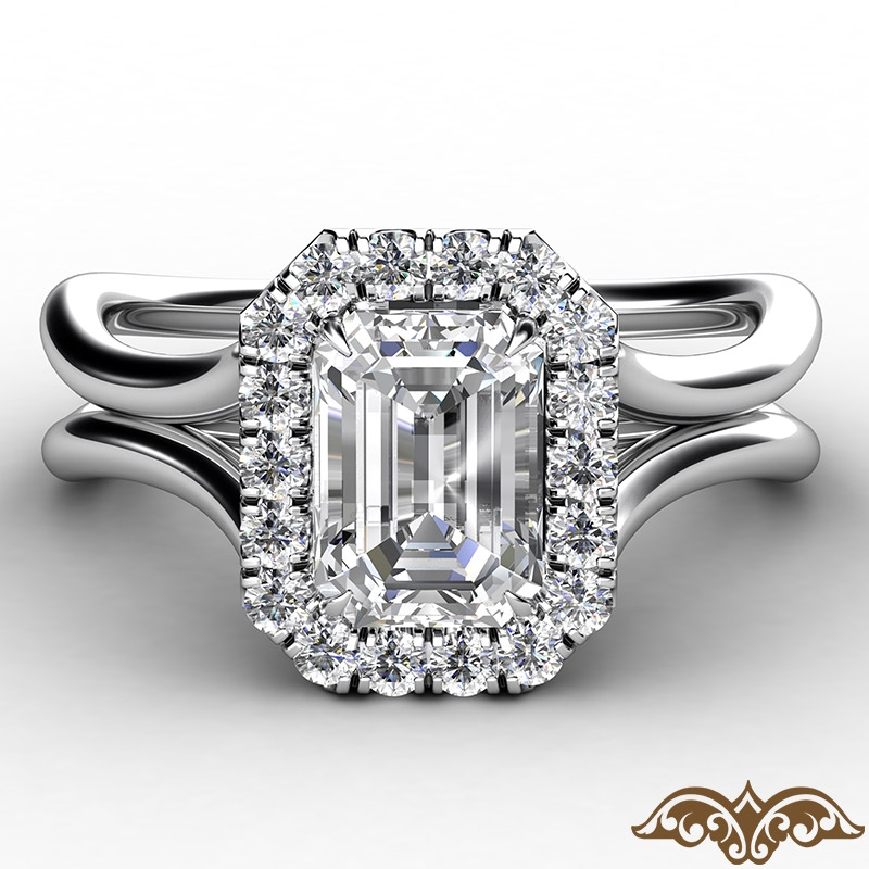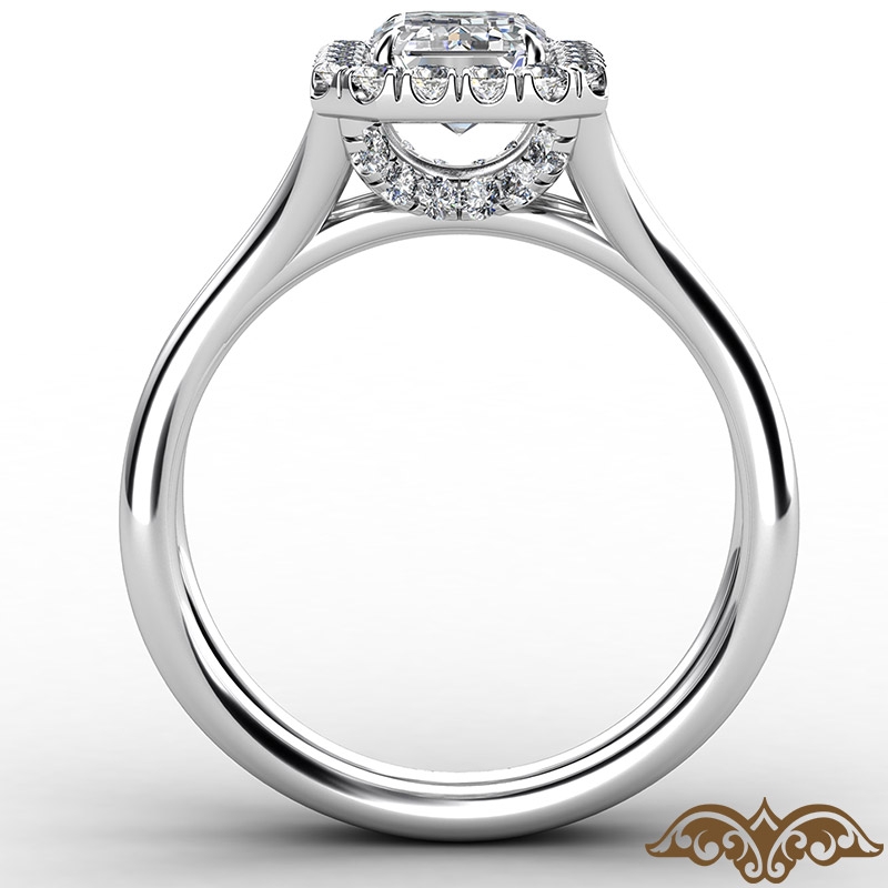 French U Cut Pave Crown halo style Engagement Ring, center is Emerald shape Diamond Report by GIA, D Color & VS1 clarity, Made in 14k White Gold (1.18 ct. tw.)