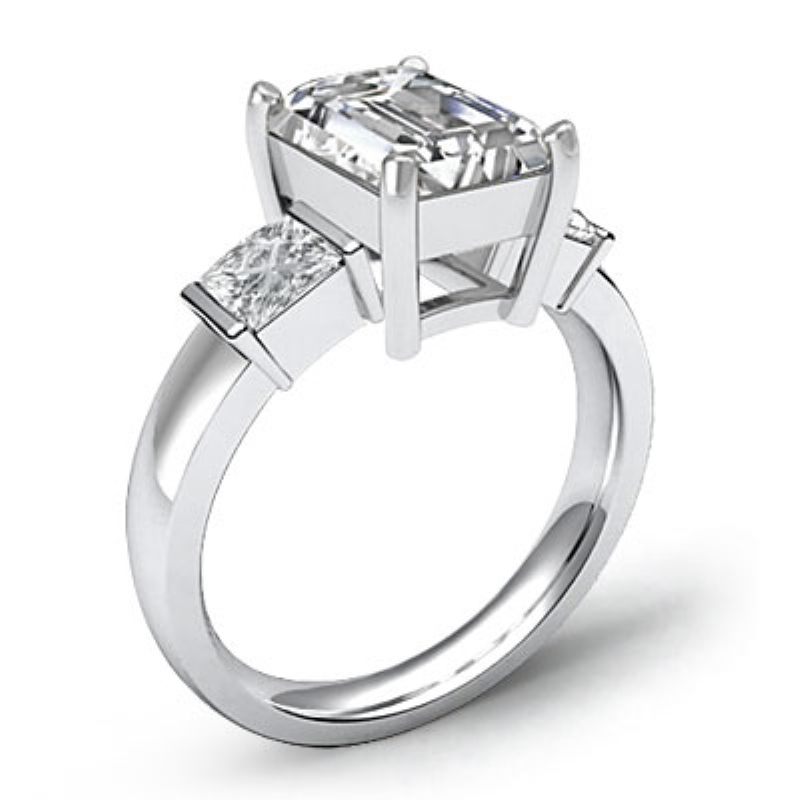 style Engagement Ring, center is Emerald shape Diamond Report by GIA, I Color & VVS2 clarity, Made in 14k White Gold (1.43 ct. tw.)