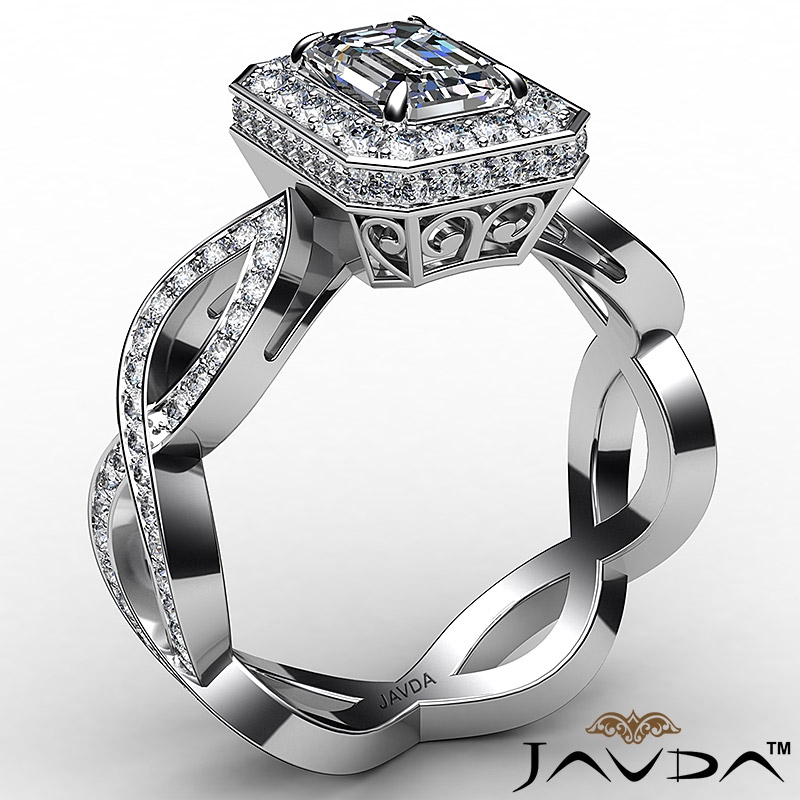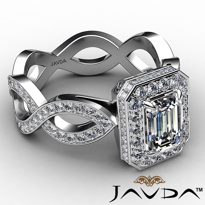 Infinity Shank Halo Micro Pave style Engagement Ring, center is Emerald shape Diamond Report by GIA, I Color & VVS2 clarity, Made in 14k White Gold (2.13 ct. tw.)
