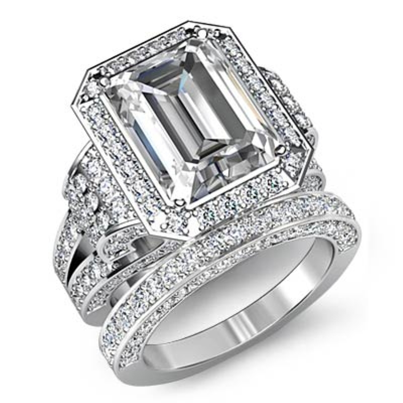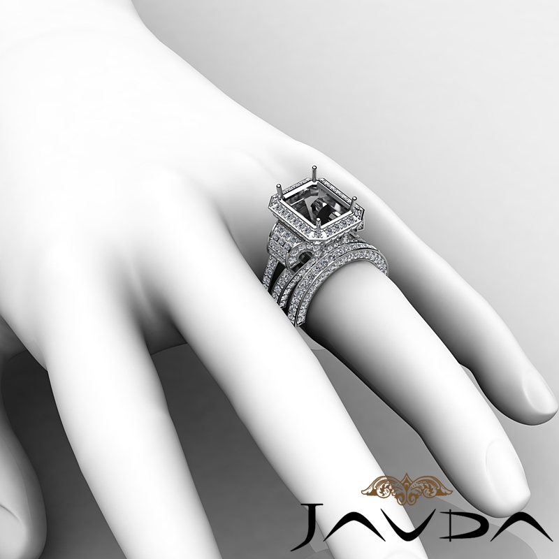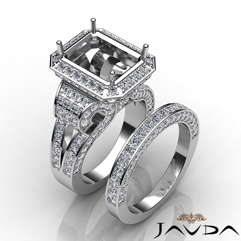 3.6Ct Diamond Engagement Ring Emerald Pave Semi Mount Bridal Set 14k White Gold.