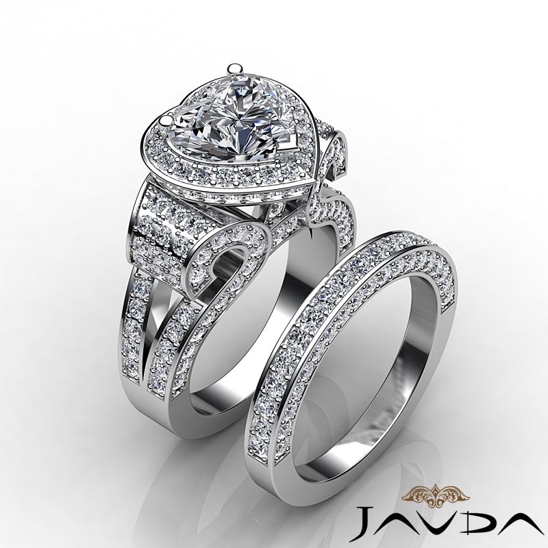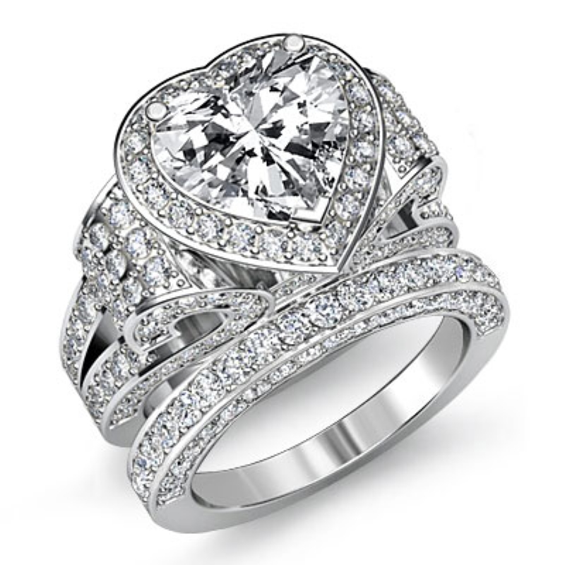 3.9Ct Diamond Engagement Ring Heart Halo Pave Setting Bridal Set 14k White Gold.