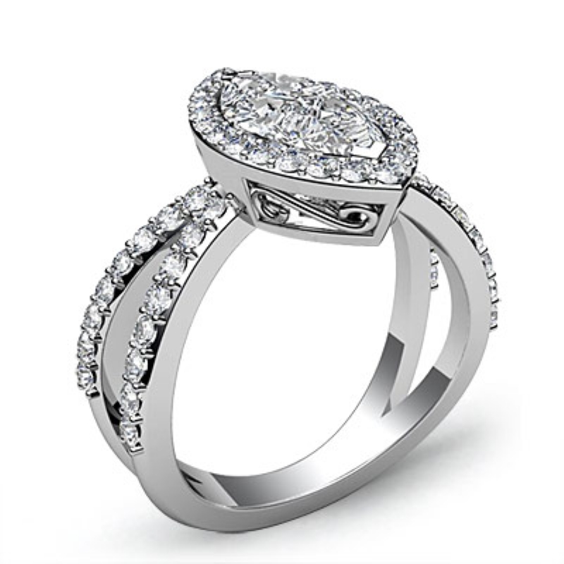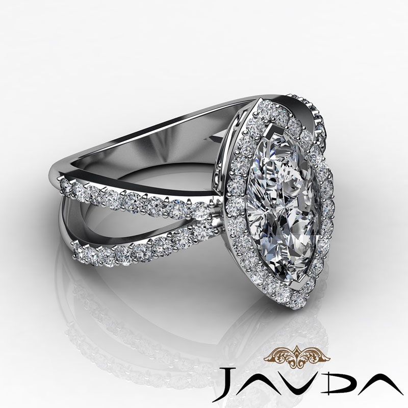 Diamond Engagement SemiMount Ring Split Shank 14k White Gold Halo Setting 0.75Ct.