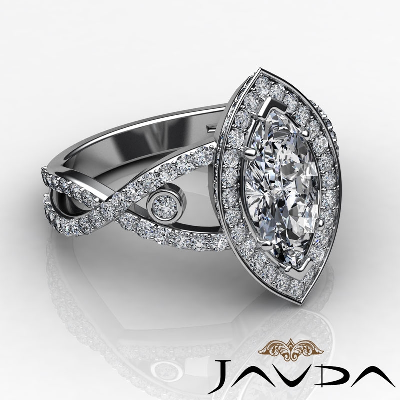 1.75Ct Diamond Engagement Ring Marquise Semi Mount Halo 14k White Gold.