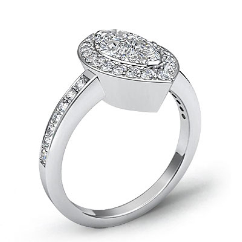 1Ct Halo Pave Setting Diamond Engagement Round Semi Mount Ring 14k White Gold.