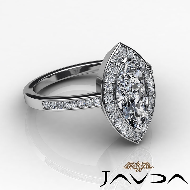 4 Prong Halo With Sidestone style Engagement Ring, center is Marquise shape Diamond Report by GIA, I Color & SI1 clarity, Made in 14k White Gold (1.95 ct. tw.)