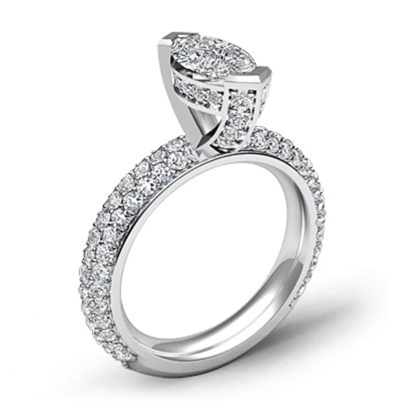 1.47Ct Diamond Pave Engagement Women Ring Pear Setting 14k White Gold - javda.com