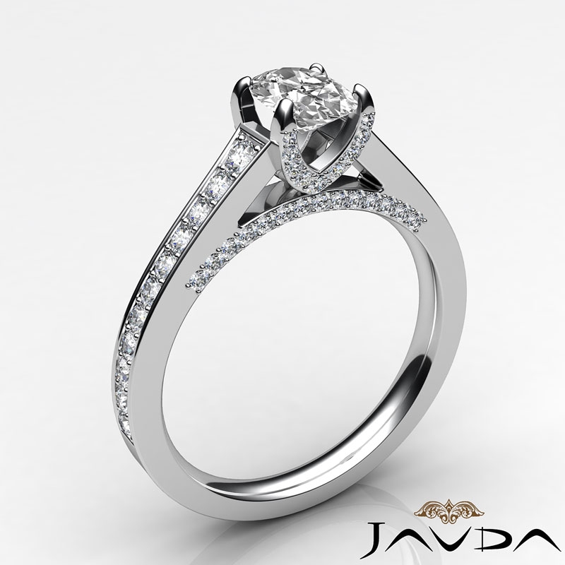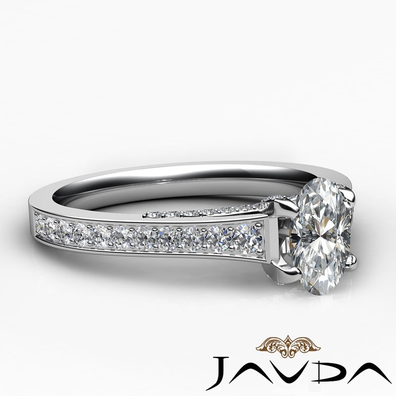 Pave Bridge Classic Sidestone style Engagement Ring, center is Oval shape Diamond Report by GIA, E Color & VS2 clarity, Made in 14k White Gold (1.25 ct. tw.)