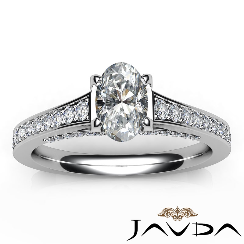 Diamond Engagement Oval Cut Semi Mount Pave Setting Ring 14k White Gold 0.75Ct.