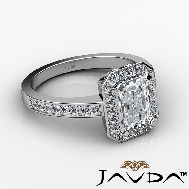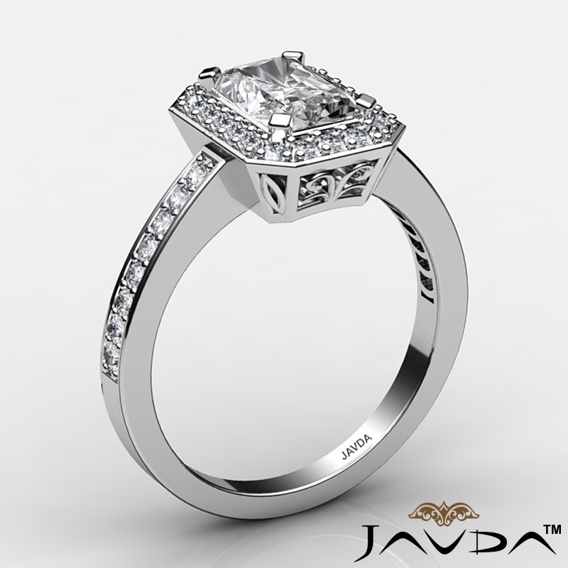 Diamond Engagement Ring Radiant Semi Mount 14k White Gold Halo Pave Setting 0.35Ct - javda.com