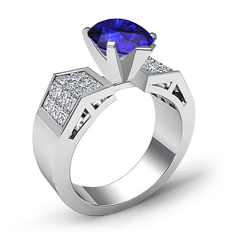 style Engagement Ring, center is Pear shape D Block Tanzanite Report by , Color & clarity, Made in 14k White Gold (3.34 ct. tw.)