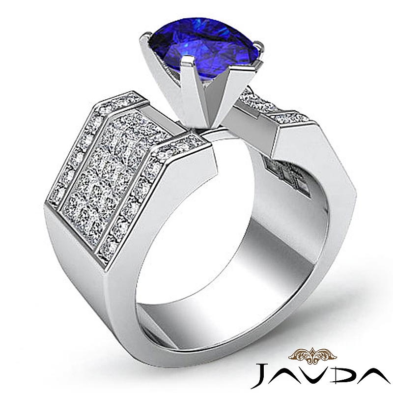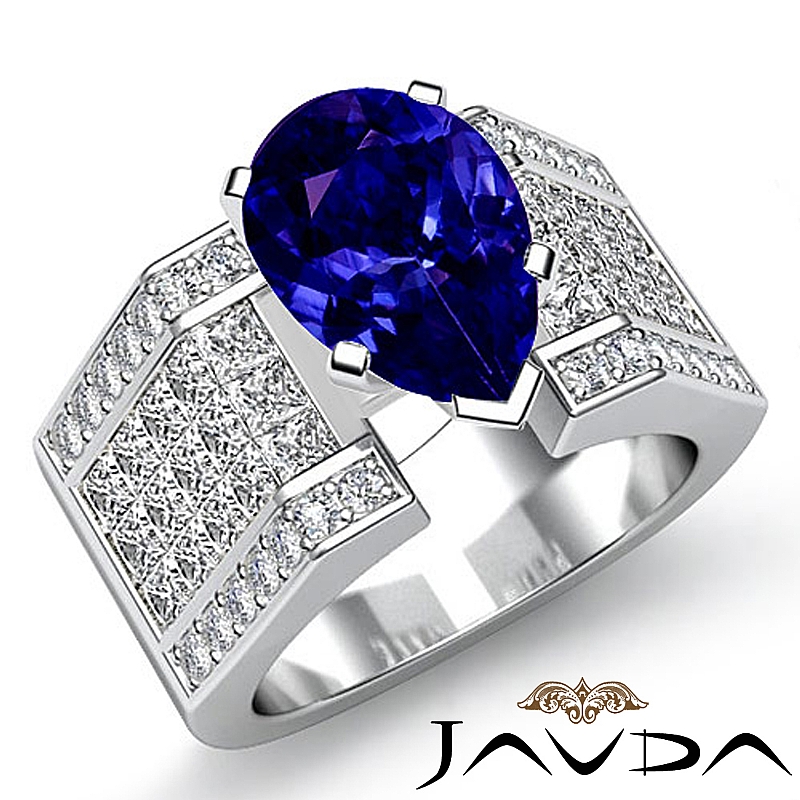 Invisible Setting Shank style Engagement Ring, center is Pear shape D Block Tanzanite Report by , Color & clarity, Made in 14k White Gold (3.62 ct. tw.)