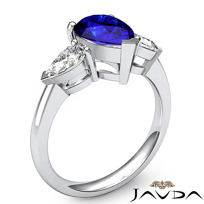 Pear Semi Mount 3 Stone Diamond Engagement Ring 14k White Gold 0.5Ct.