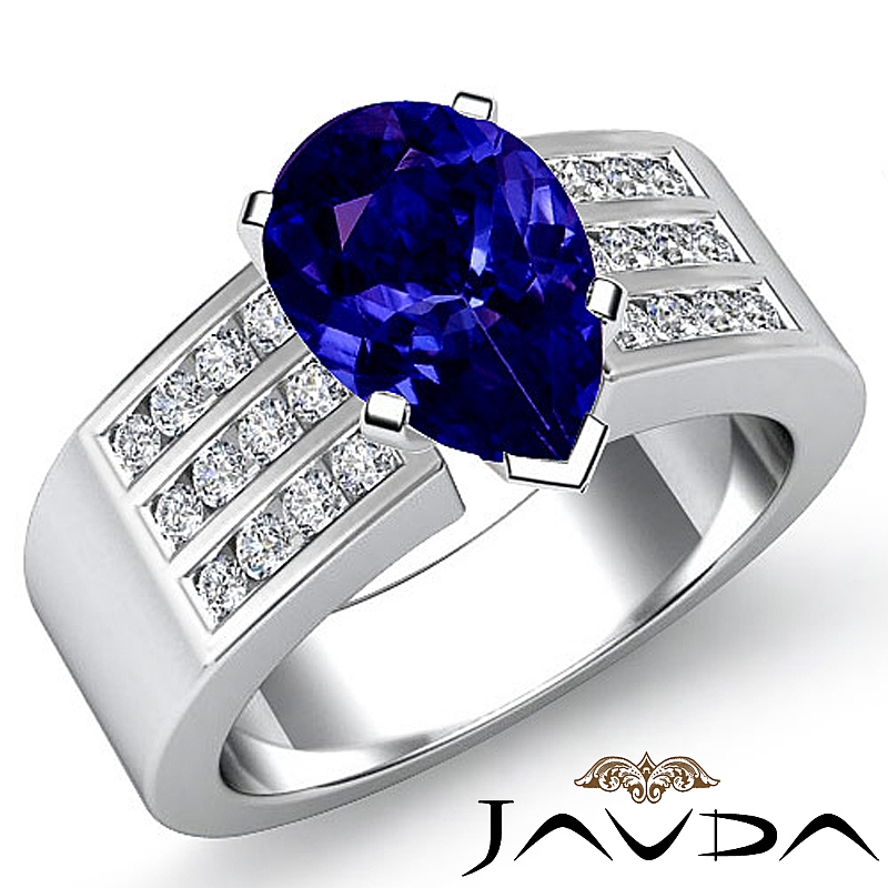 Channel Set Sidestone style Engagement Ring, center is Pear shape D Block Tanzanite Report by , Color & clarity, Made in 14k White Gold (1.31 ct. tw.)