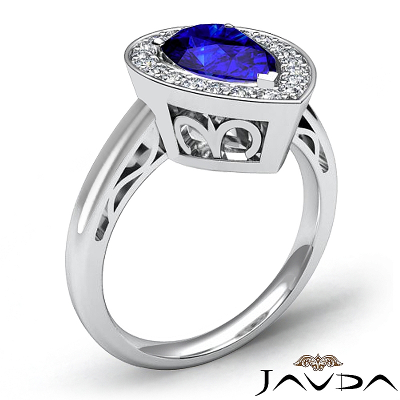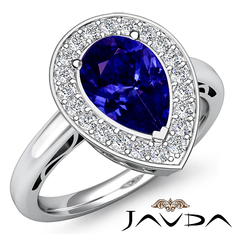 Halo Sidestone Filigree style Engagement Ring, center is Pear shape D Block Tanzanite Report by , Color & clarity, Made in 14k White Gold (1.36 ct. tw.)