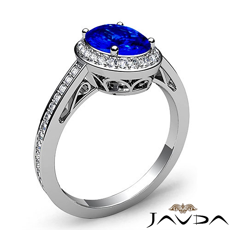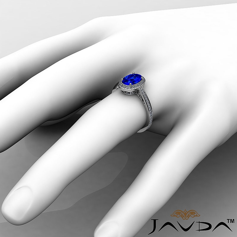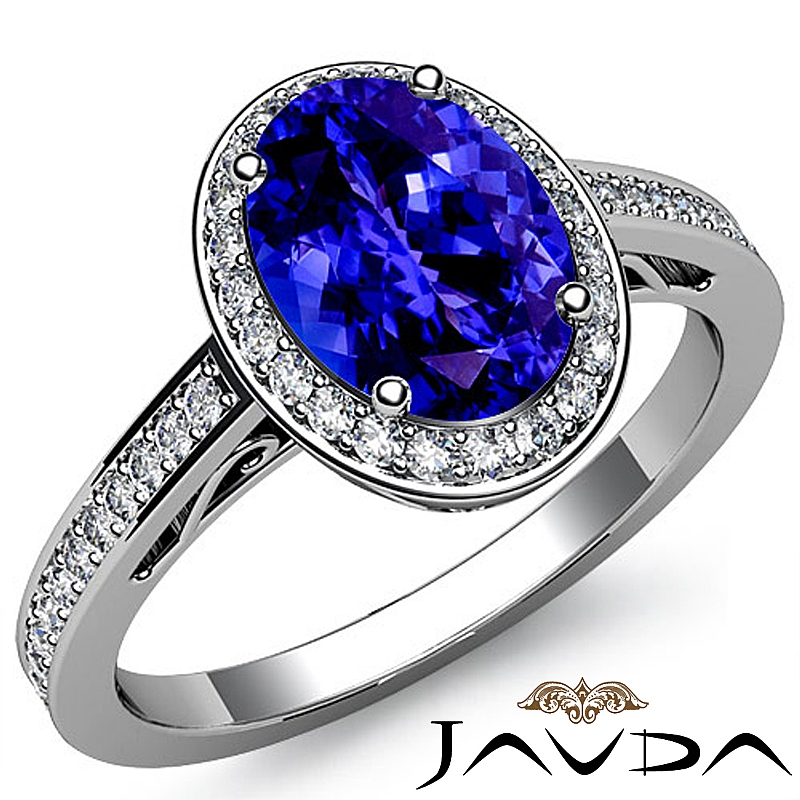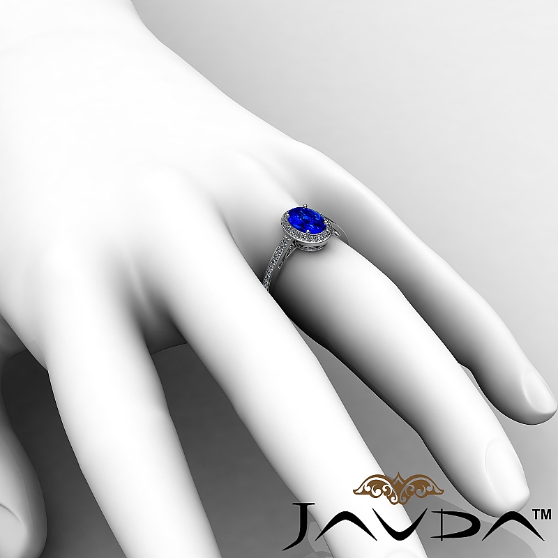 Halo Pave Sidestone Filigree style Engagement Ring, center is Oval shape D Block Tanzanite Report by , Color & clarity, Made in 14k White Gold (1.5 ct. tw.)